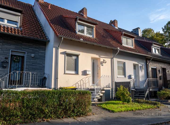 Dieses modernisierte Reihenmittelhaus aus dem Baujahr 1958 befindet sich in einer ruhigen Wohnstraße von Bremen-Kirchhuchting und bietet auf einer Wohnfläche von ca. 82 m² sowie einem Grundstück von rund 153 m² ein gepflegtes Zuhause, das ohne größere Renovierungen bezogen werden kann. Die Immobilie überzeugt durch ihre solide Bauweise, den liebevoll gepflegten Zustand und den schönen Garten mit rückseitigem Zugang.