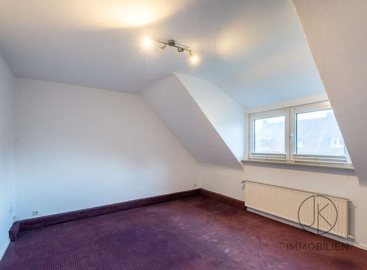 Im Dachgeschoss befinden sich zwei Schlafzimmer, die sich vielseitig nutzen lassen, etwa als Elternschlafzimmer, Kinderzimmer oder Büro. Das Badezimmer ist zentral zwischen beiden Räumen gelegen und funktional gestaltet. Darüber hinaus bietet der Spitzboden zusätzliche Nutzfläche, die sich hervorragend als Stauraum eignet.
