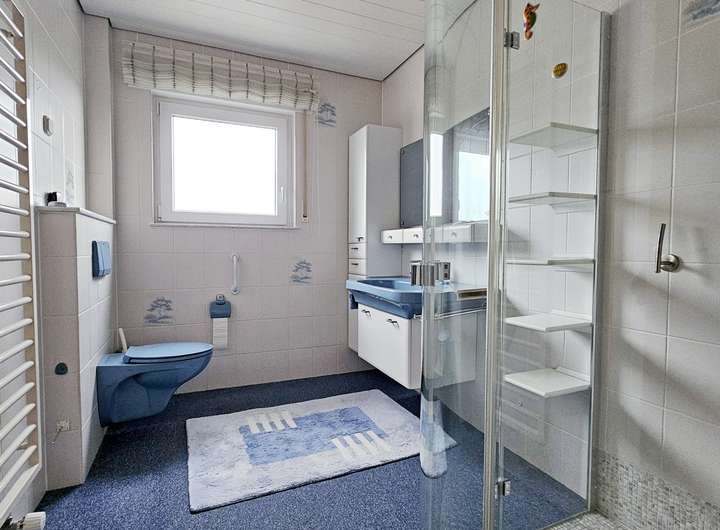 Im Erdgeschoss befinden sich außerdem ein Schlafzimmer, ein Kinderzimmer und eine praktische Abstellkammer. Das Tageslichtbad wurde 2008 modernisiert und mit einer bodentiefen Dusche ausgestattet.