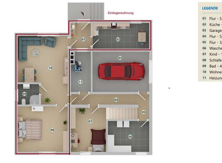 Dank der separaten Einliegerwohnung ist dieses Haus sowohl für Familien als auch für Mehrgenerationenwohnen oder Kapitalanleger eine attraktive Gelegenheit.
