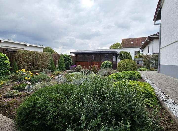 Das gepflegte Grundstück überzeugt mit einem ansprechenden Außenbereich. Ein Geräteschuppen bietet Platz für alles, was man für Garten und Hobby braucht.