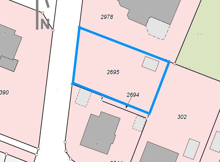 Das Grundstück hat einen leicht trapezförmigen Zuschnitt. Die Ausrichtung ist etwa Ost / West und wird vom Westen erschlossen.