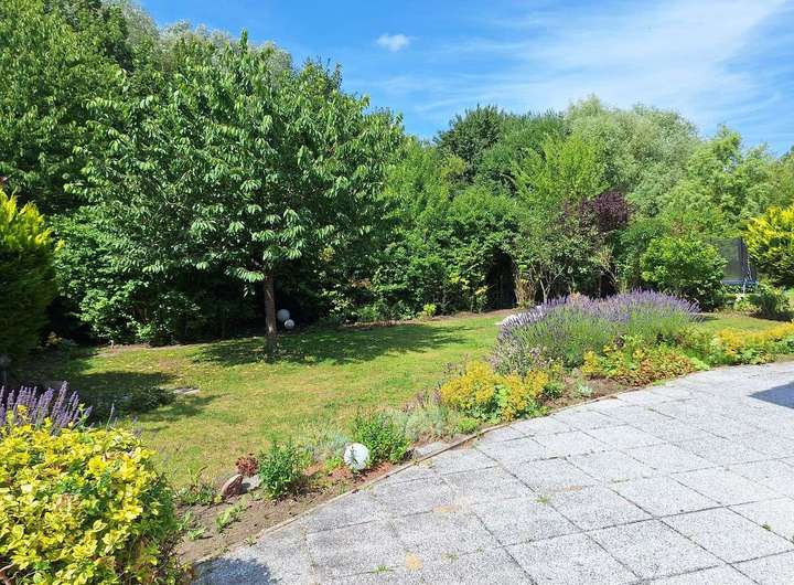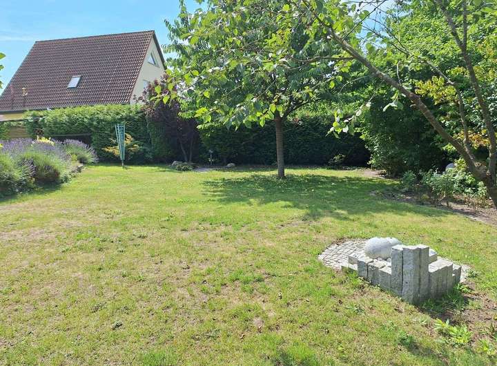Der hübsch begrünte Garten bietet ausreichenden Platz für vielfältige Freizeitaktivitäten. Zudem findet man auf dem Grundstück noch einen Carport mit Schuppen.