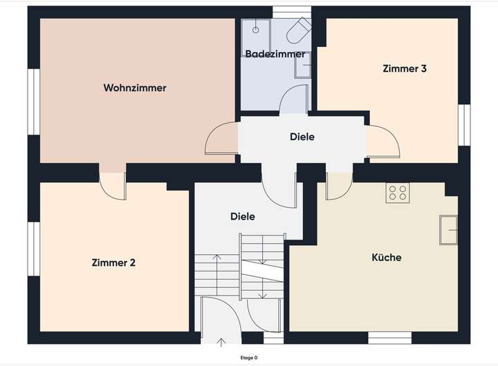 Ergänzt wird das Obergeschoss durch eine separate Küche, ein vielseitig nutzbares Zimmer – ideal als Arbeits- oder Gästezimmer, ein Gäste-WC und die einladende Diele im Eingangsbereich der Wohnung.