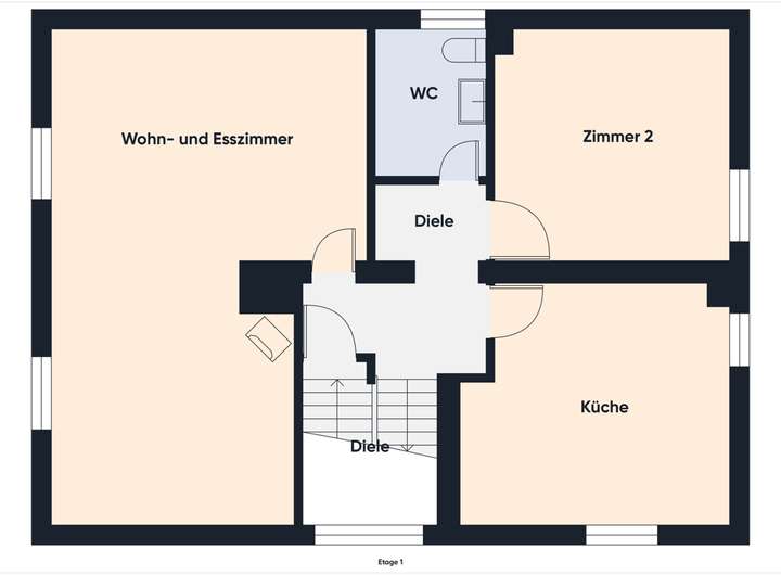 Bei den hier veröffentlichten Grundrisszeichnungen handelt es sich um Exposégrundrisse, die ausschließlich zur Orientierung dienen, wie die Flächen aktuell genutzt werden bzw. bisher genutzt wurden. Eine Ableitung bezüglich genehmigter Wohnflächen bzw. Nutzflächen, wie auch die Richtigkeit der angegebenen Quadratmeterzahlen, ergibt sich hieraus nicht.