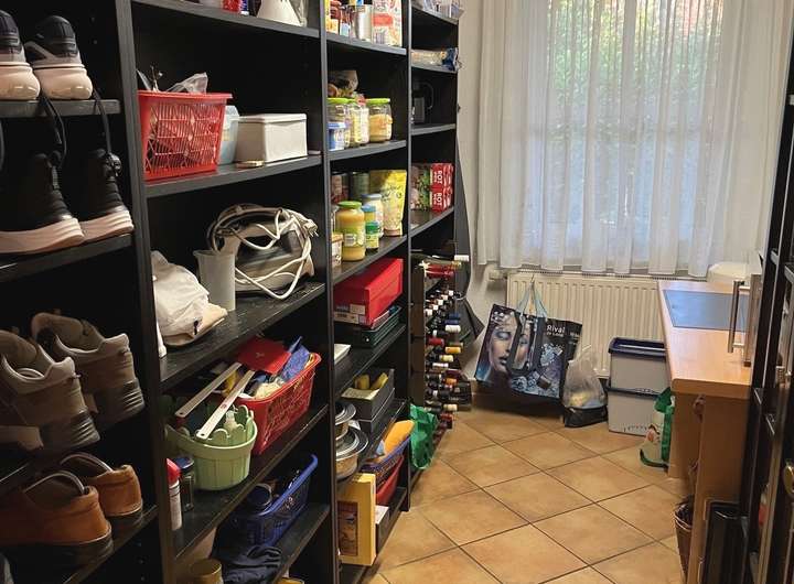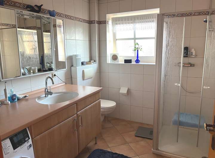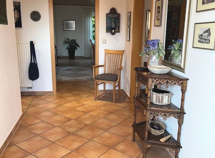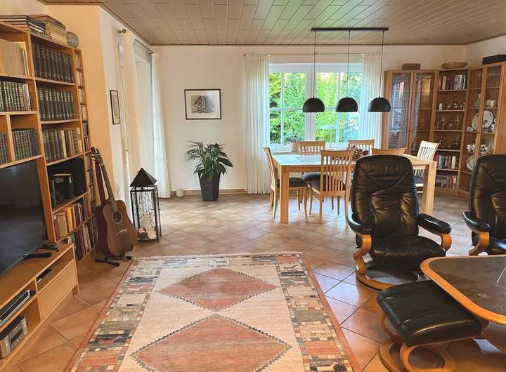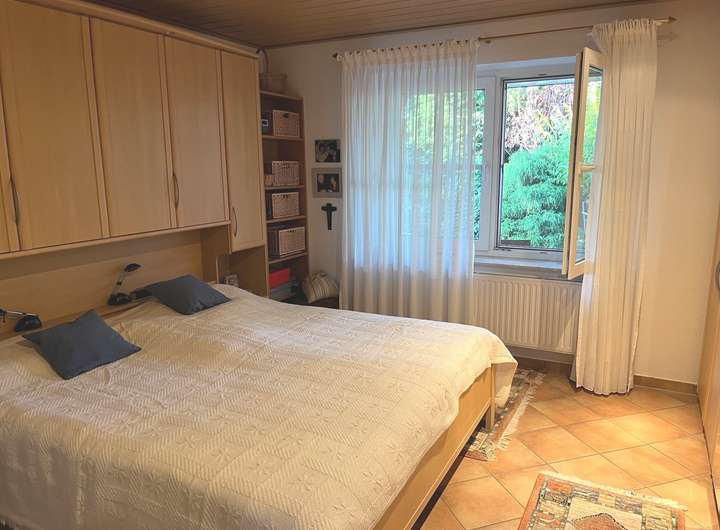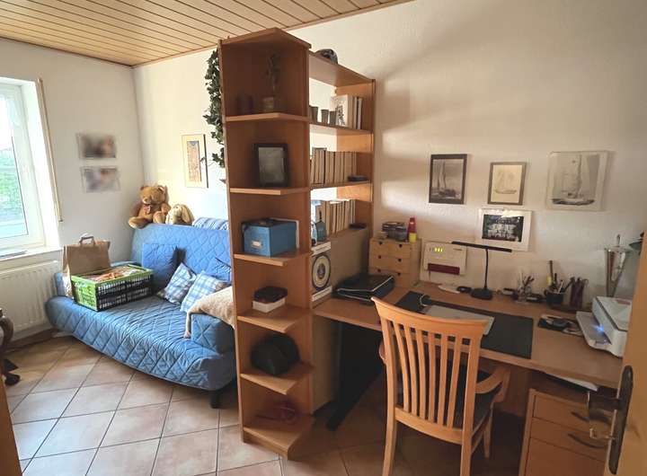 Ursprünglich als Einfamilienhaus mit ca. 100 m² Wohnfläche erstellt, verfügt das Erdgeschoss über ein großzügiges Wohnzimmer, das Elternschlafzimmer, ein Kinder-/Gästezimmer, die Essküche mit Einbauküche, das Badezimmer mit Dusche und WC, ein Gäste-WC mit Urinal, dem Hauswirtschaftsraum und die Diele.