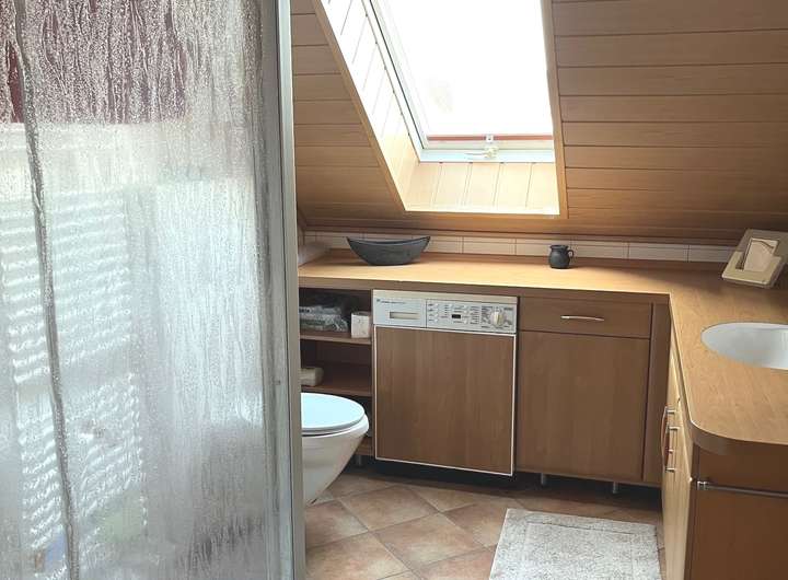 2003 wurde das Dachgeschoss mit ca. 80 m² Wohnfläche ausgebaut. Dieses ist über eine Außentreppe zu erreichen. Dadurch entstand eine separate zweite Wohnung. Diese ist aufgeteilt in ein Wohnzimmer, ein Elternschlafzimmer, ein Kinder-/Gästezimmer, die Küche mit Einbauküche, dem Badezimmer mit Dusche und WC, dem Abstellraum, dem Heizungsraum sowie dem Windfang, der Diele und dem Flur.