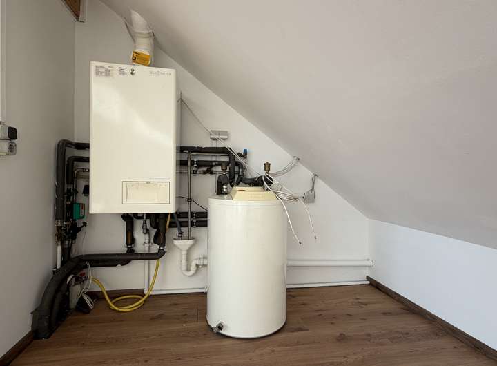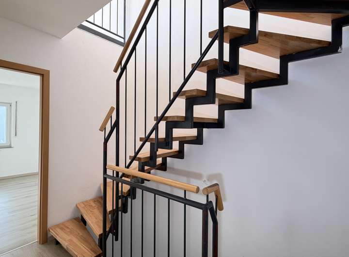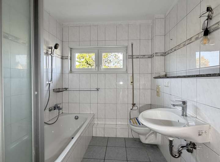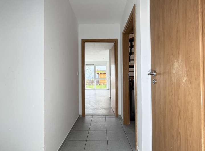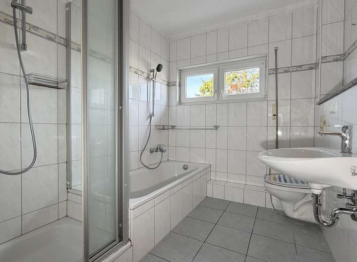 Im 1. Obergeschoss befinden sich drei Schlafzimmer, die sich ideal als Kinder-, Arbeits- oder Elternzimmer eignen. Das Badezimmer bietet mit Dusche, Badewanne und WC modernen Komfort und ausreichend Platz für die ganze Familie.