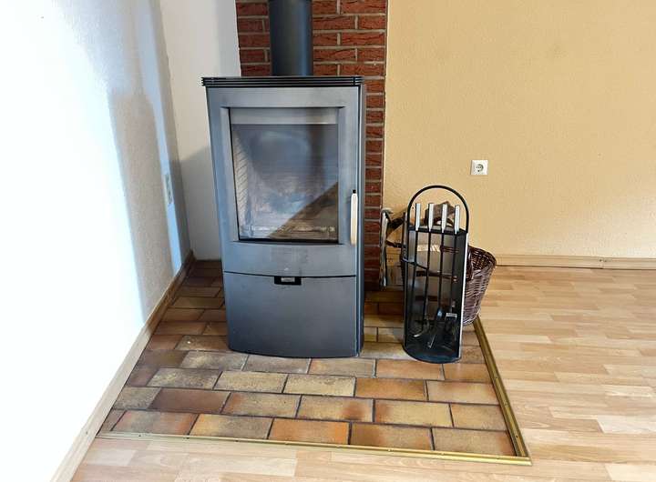 Kamin: Das Wohnzimmer bietet einem Kamin, der an kalten Wintertagen eine behagliche Atmosphäre schafft und zusätzlich zur Heizungsanlage genutzt werden kann.