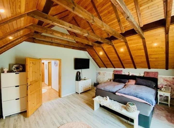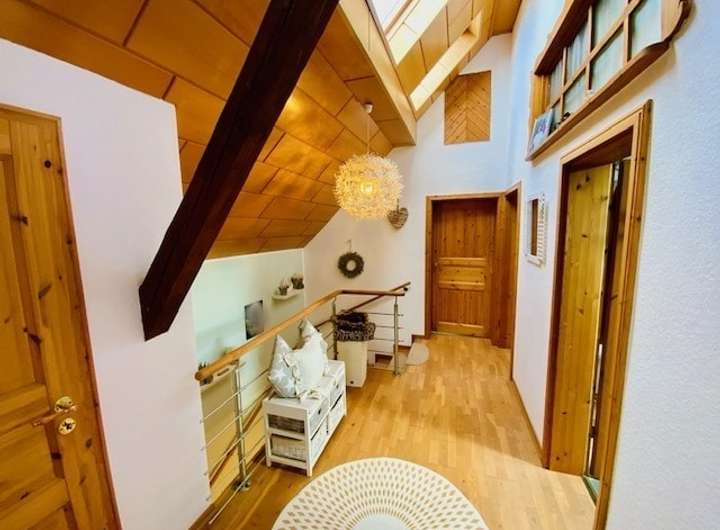 Das zurückliegende Einfamilienhaus aus dem Baujahr 1998 mit ca. 130 m² Wohnfläche überzeugt neben einem offengestalteten Wohn- und Essbereich mit praktischer Küchennische auch mit einer offenen Galerie im Obergeschoss. Dieser ausgedehnte Luftraum setzt sich im großzügigen Tageslichtbadezimmer und im weitläufigen Schlafzimmer fort und bietet Ihnen oder Ihren Mietern einen außergewöhnlichen Wohnkomfort. Ergänzt wird dieses ansprechende Haus durch eine Garage, einen Balkon und eine behagliche Terrasse.