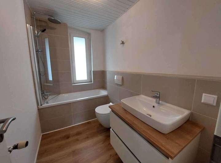 Die beiden OG-Wohnungen und DG-Wohnungen wurden inklusive der Bäder umfassenend modernisiert wie auf den Bildern sichtbar ist.