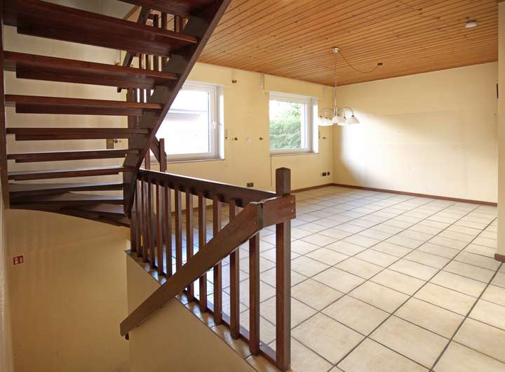 * Kaminofen im Wohnzimmer * Sauna im Keller * Fußbodenheizung im EG * Elektrische Rollläden * Einbauküche inklusive * Fenster zum Teil schon modernisiert * 1 Carport-Stellplatz * Geräte Schuppen * Großzügiger Garten mit Gestaltungsspielraum * Obstbäume im Garten wie z.B. Kirsche, Äpfel, Johannisbeere, Himbeere * Brunnen zur Gartenbewässerung * Modernisierungsbedürftiger Zustand – viel Potenzial für individuelle Wünsche * Ruhige Lage, familienfreundliche Umgebung * Essbereich * Gäste-WC * Diele * Drei Zimmer im Obergeschoss * Zwei Bäder Kellergeschoss: * 69 m² Nutzfläche * Sauna * Gas-Brennwerttherme aus Bj 2020 * Ca. 69 m² Nutzfläche * 1 Carport