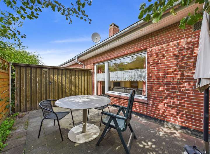 Vom Wohnbereich gelangen Sie auch auf die Außenterrasse. Hier können Sie und Ihre Gäste durch die Südwest-Ausrichtung nach dem Tag am Strand immer noch ungestört die Sonne genießen und den Abend beim Grillen ausklingen lassen. Auch Ihr Vierbeiner kann hier unbeaufsichtigt spielen, denn der Außenbereich ist umzäunt.