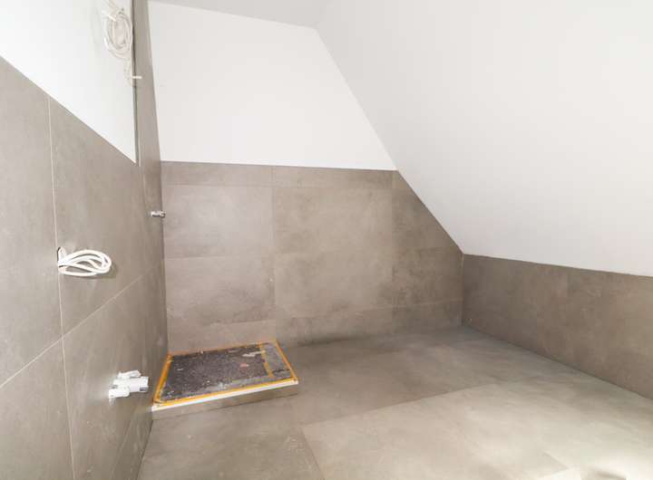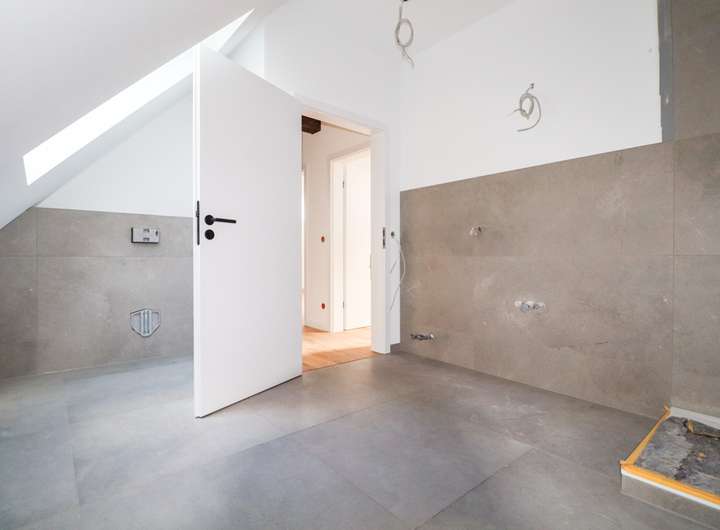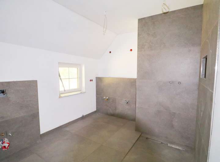 - Badezimmer mit freistehender Badewanne und Dusche im Obergeschoss
