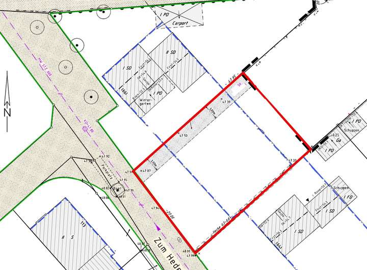 Das Grundstück besticht durch seine ideale rechteckige Form und ermöglicht die Realisierung eines freistehenden, 1,5-geschossigen Einfamilienhauses mit großzügiger Wohnfläche und moderner Architektur. Dank des gültigen Bebauungsplans und der bereits erfolgten Erschließung steht einer zeitnahen Bebauung nichts im Wege.