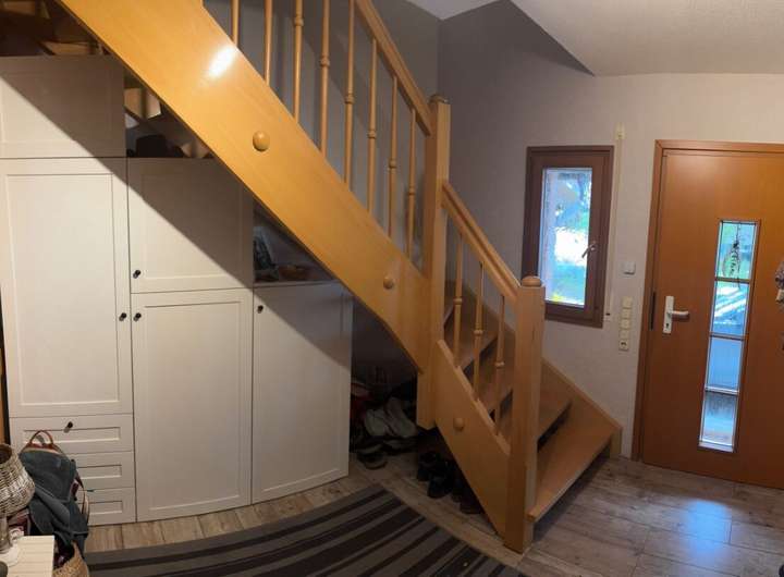 Ein besonderes Highlight ist das durch Holz- und Glaselemente abgetrennte Treppenhaus – ideal zur energetischen Trennung oder zur Nutzung des Obergeschosses als Einliegerwohnung.