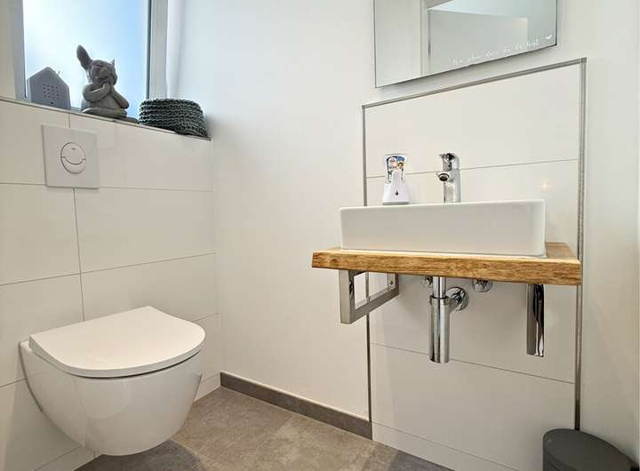 Dank der energieeffizienten Bauweise als KfW-55-Haus profitieren Sie nicht nur von niedrigen Energiekosten, sondern auch von einem zukunftssicheren Wohnstandard. Hochwertige Materialien, ein stilvolles Badezimmer und die ruhige, zugleich zentrale Lage runden das Angebot ab.