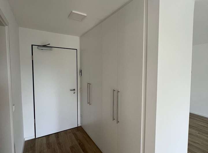 Küche und Flur: Offener Wohnbereich mit moderner Küche; Einbauschrank im Flurbereich für optimalen Stauraum.