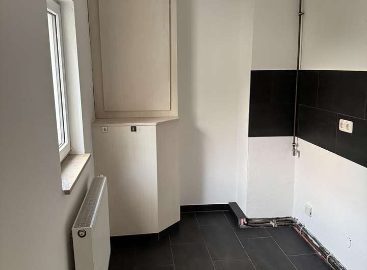 Die Küche mit Gasanschluß (Herd) befindet sich im 1. Stock über dem Badezimmer (EG).