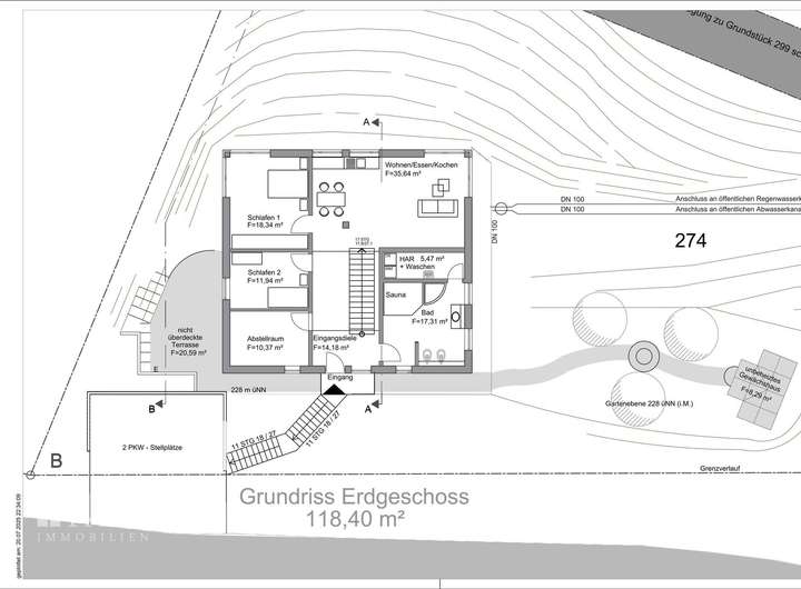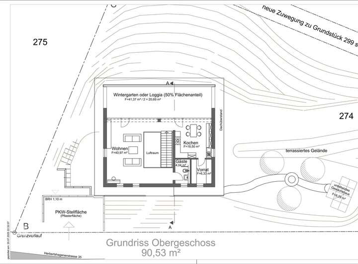 Das obere Grundstück ist derzeit mit einem Rohbau in Containerbauweise bebaut, der jedoch abbruchreif ist.