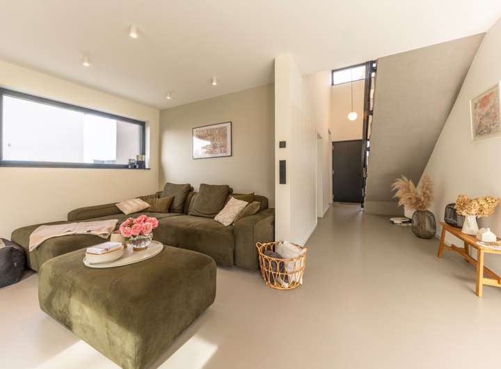 Dieses Haus überzeugt durch seine hochwertige Bauweise und zukunftsweisende Ausstattung. Eine effiziente Wärmepumpe und die durchgehende Fußbodenheizung sorgen für ein behagliches Raumklima. Der fugenlose und strapazierfähige Design-Epoxidharzboden verbindet Langlebigkeit mit modernem Stil und ist zudem besonders pflegeleicht.