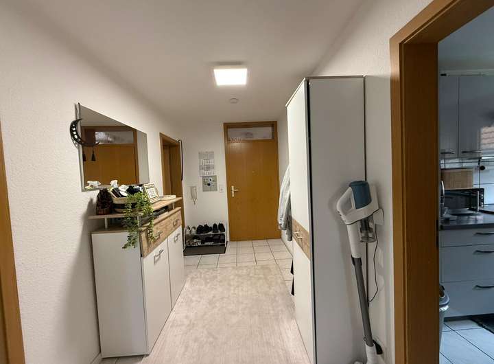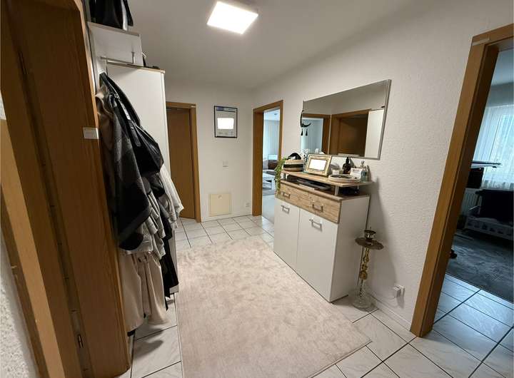 Bereits beim Betreten der Wohnung empfängt Sie ein großer, einladender Flur, der viel Platz für Garderobe, Kommode und Stauraum bietet. Durch die großzügige Gestaltung entsteht gleich beim Eintreten eine angenehme und offene Atmosphäre, die den positiven ersten Eindruck unterstreicht.