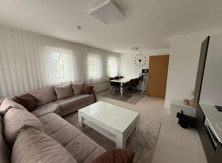 Der Wohn- und Essbereich bildet das Herzstück der Wohnung – dank der Ost-Süd-West-Ausrichtung ist der Raum lichtdurchflutet und freundlich. Mehrere Fenster lassen viel Tageslicht herein und schaffen ein behagliches Ambiente für gemütliche Stunden mit Familie oder Freunden.