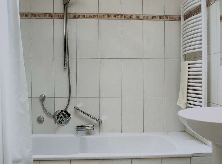 Das Hauptbadezimmer besitzt eine Badewanne und ein zu öffnendes Oberlicht. Es gibt zusätzlich ein Gäste-WC, ebenfalls mit öffnendem Oberlicht.