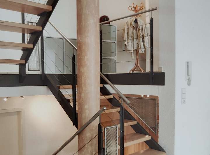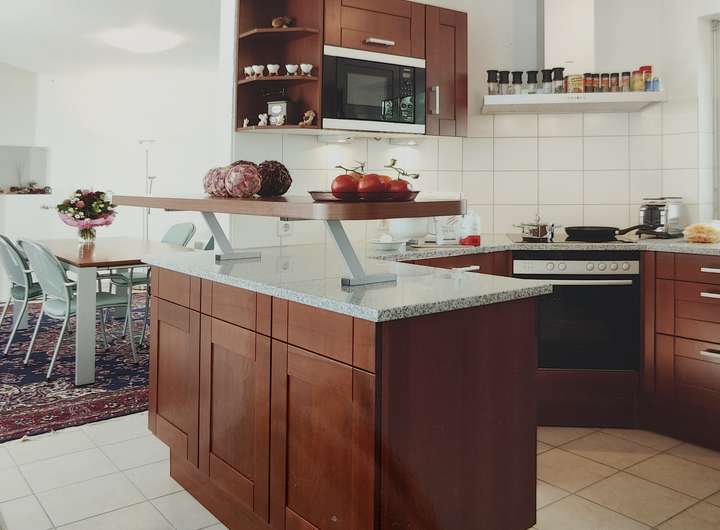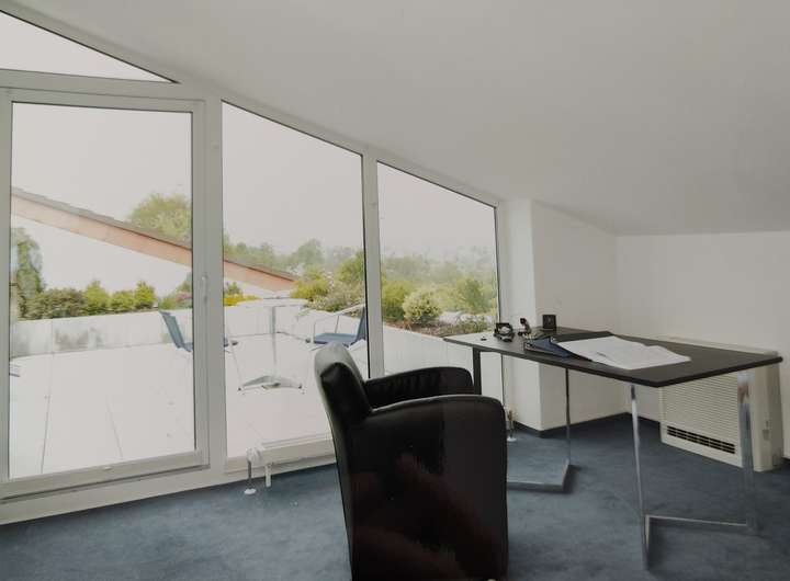 Eine Dachterrasse mit unverbaubarem Blick über die Filderebene gehört ebenso dazu wie eine Terrasse auf der großzügigen Wohn-Ess-Ebene. Diese Ebene ist mit einer offenen Küche ausgestattet.