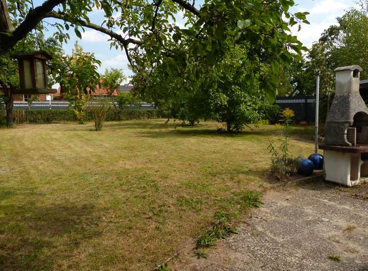 Auf dem Grundstück befindet sich neben einem zusätzlichen Pkw-Einstellplatz eine Garage mit elektrischem Tor. Außerdem gibt es Abstellmöglichkeiten für Gartengeräte und Fahrräder sowie einen überdachten Sommersitzplatz. Ebenfalls vorhanden ist ein Brunnen, der über eine Pumpe bedient werden kann. Die großzügige gepflasterte Auffahrt kann auch als Stellplatz genutzt werden.