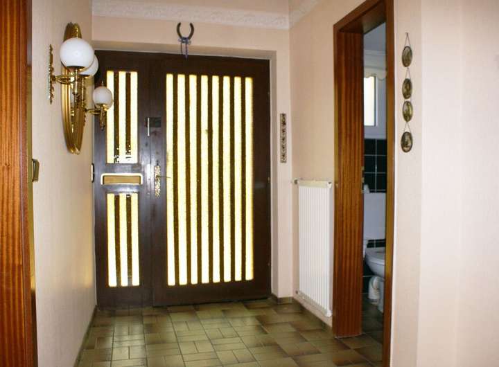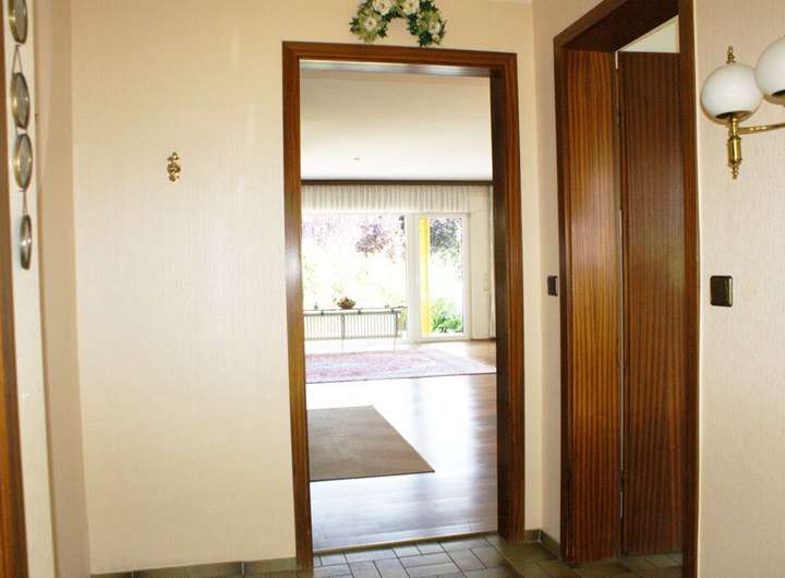 Die Grundrisse des Hauses sind wohl durchdacht und bieten einer 4- bis 5-köpfigen Familie ausreichend Platz. Der Eingangsbereich, ein Windfang, ist großzügig und bietet Platz für eine Garderobe. Seitlich befindet sich das für ein Reihenhaus typische Gäste-WC mit Tageslicht. Der sich anschließende Flur öffnet sich zum großen Wohn-/Esszimmer, seitlich geht es in die sehr geräumige Küche.
