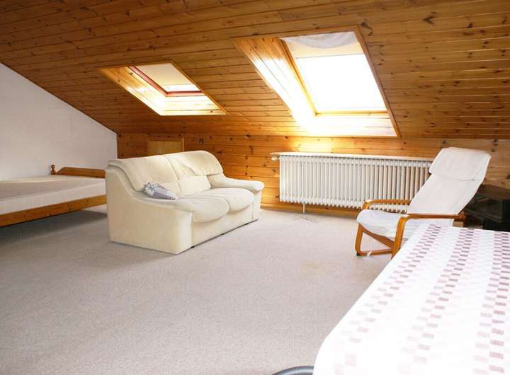 Das Dachgeschoss wurde ausgebaut. Hier befinden sich ein in sich abgeschlossenes Studio mit einer kleinen Küchenzeile und ein Dusch-Badezimmer.