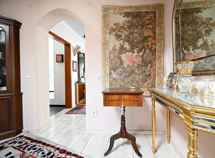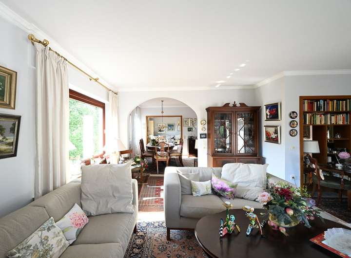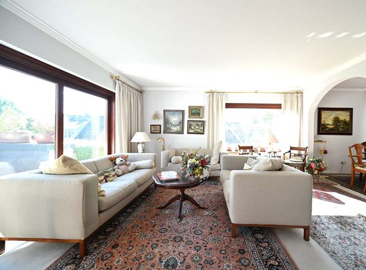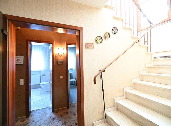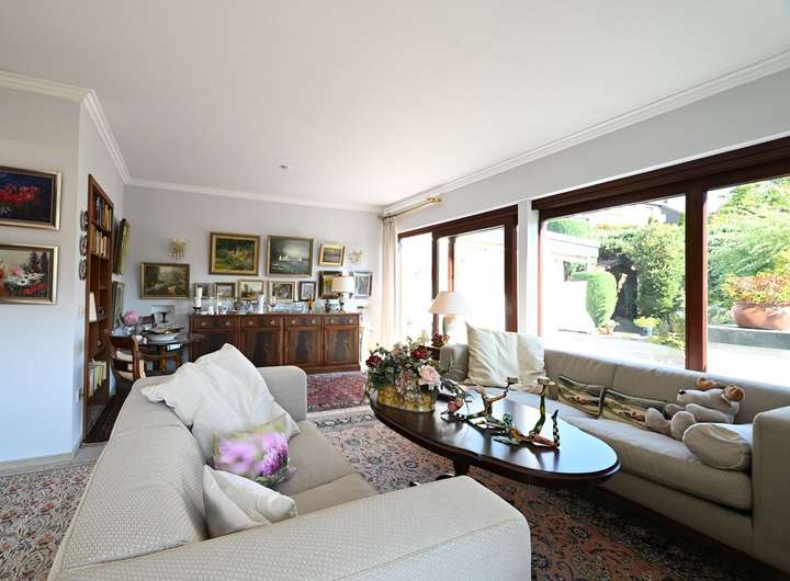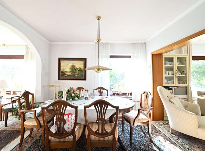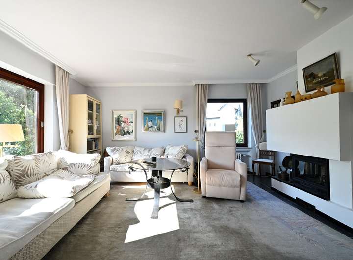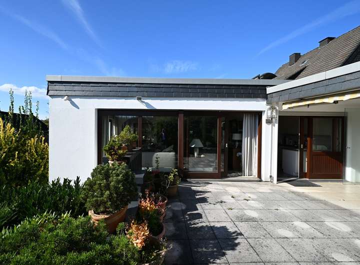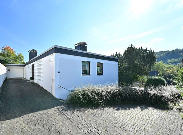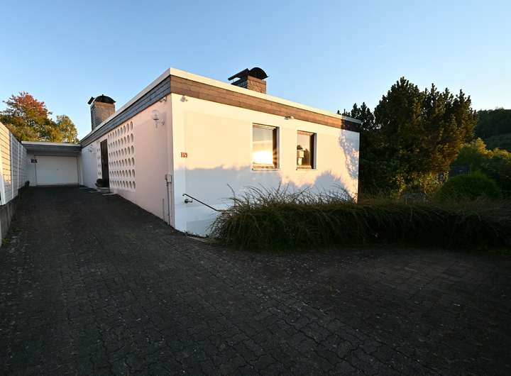 Der im Jahr 1972 von Architektenhand entworfene und im klassischen kubischen Stil errichtete Unternehmer-Bungalow ruht auf einem, in rückwärtiger Bebauung befindlichen, ca. 530 qm großen Grundstück mit diskreter Zuwegung. Als eines der wenigen, unverfälschten Bauwerke seiner Art, präsentiert dieser dezent auftretende Bungalow eine gelungene Symbiose aus klassischem Stil und funktionaler, großzügiger Raumaufteilung auf ca. 170 qm Wohnfläche. Dies zeigt sich bereits beim Entrée in die elegante Diele mit einer Lichtkuppel, die ein besonderes Ambiente schafft. Sämtliche Räume der Ebene sind von der Diele aus erreichbar, sowie auch der Zugang zum Souterrain. Der geradezu verschwenderisch ausgelegte Wohn-/Essbereich mit Zutritt auf die Terrasse in Südausrichtung welche nicht einsehbar ist und zum Grillen und Chillen einlädt, nebst Kaminzimmer mit sehenswert gestaltetem Kamin, bildet das Kernstück des Erdgeschossebene. Des Weiteren offeriert diese Wohnebene die Küche ebenfalls mit Terrassenzugang, ein Gästezimmer und das Gäste-WC. Von der einladenden Diele führt eine Treppe in das Gartengeschoss, welches den Schlaftrakt mit dem Master-Bedroom mit Badezimmer-en-suite und Sauna sowie, auch als Einliegerwohnung mit eigenem Eingang separierbar, ein Arbeits-/Wohnzimmer nebst Schlafzimmer, Küchenecke und einem Duschbad. Zwei Kellerräume und eine Garage runden den praktischen Nutzwert der Immobilie ab. In Summe: Ein im klassischen Bungalow-Stil gestaltetes Wohnjuwel in bester Stadtteil-Lage Siegens !