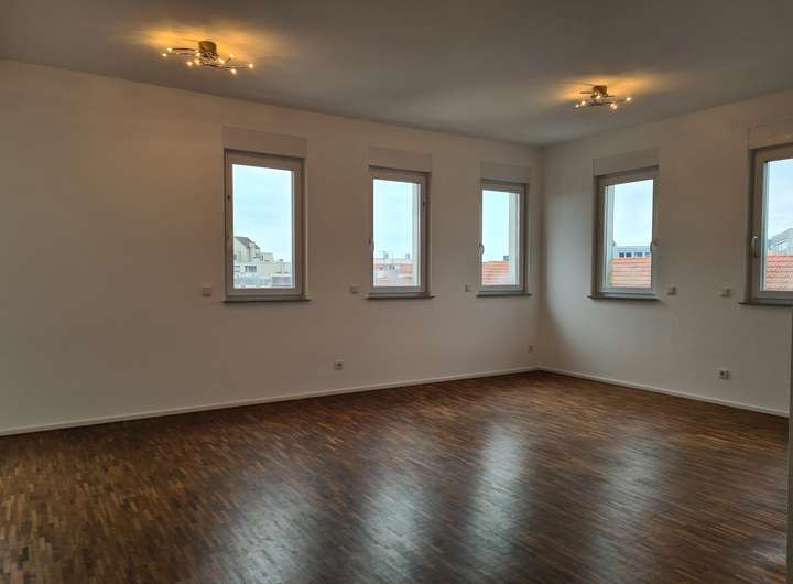 Die helle lichtdurchflutete Wohnung mit großen Fensterflächen und einer Raumhöhe von ca. 2,80 m auf der Wohnetage im 3. OG. hat eine Wohnfläche von ca. 124 m², die sich auf 3 ZKB, G-WC, Galerie, Balkon und eine ca. 32 m² große auf 3 Seiten umlaufende Terrasse (ist zur Hälfte in die Wohnfläche mit eingerechnet) verteilt.