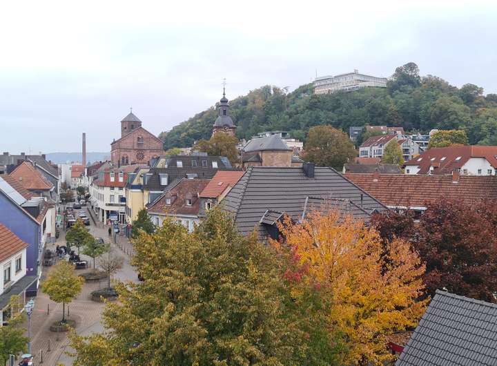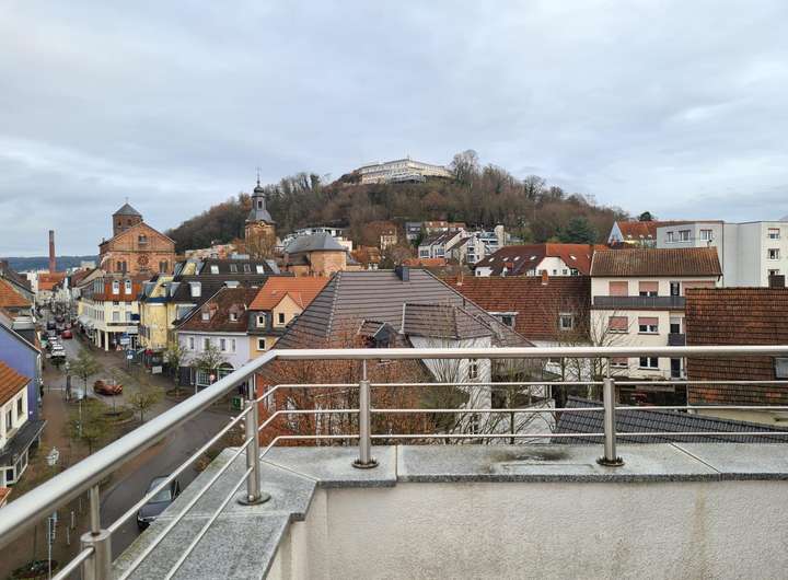 Die Terrasse - über den Dächern von Homburg - eröffnet einen grandiosen Rundum-Fernblick über die Stadt, insbesondere auch über die Altstadt mit dem historischen Marktplatz und zum Schloßberg.