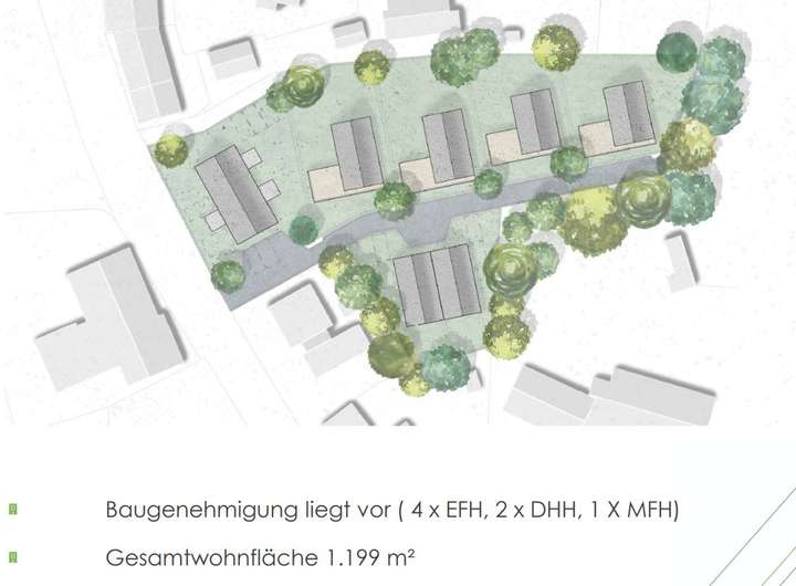 weitere Sonderausstattungen: Wohnfläche ca. 1.199 m², Erschlossen, Baugenehmigung liegt vor
