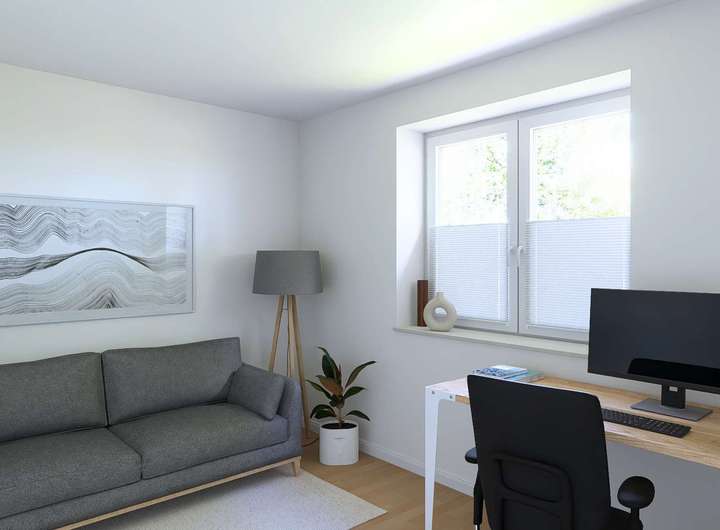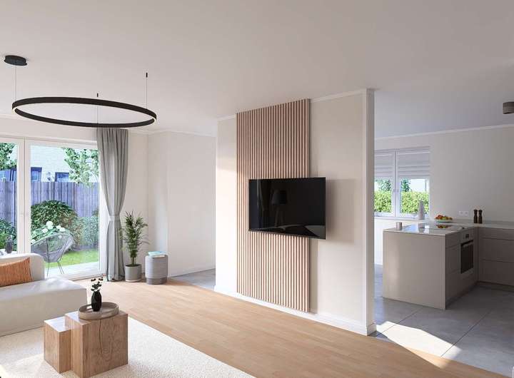 Die Visualisierungen dienen lediglich der Veranschaulichung und stellen keinen Anspruch auf Richtigkeit und Vollständigkeit dar. Dargestellte Inneneinrichtungen sowie eventuell aufgeführte Extras sind nicht Bestandteil dieses Angebotes. Für die Ausführung und den Lieferumfang sind allein die genehmigten Baupläne bzw. die bei Abschluss eines Kaufvertrages beurkundeten Unterlagen verbindlich.