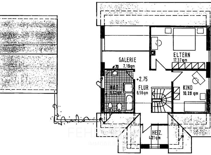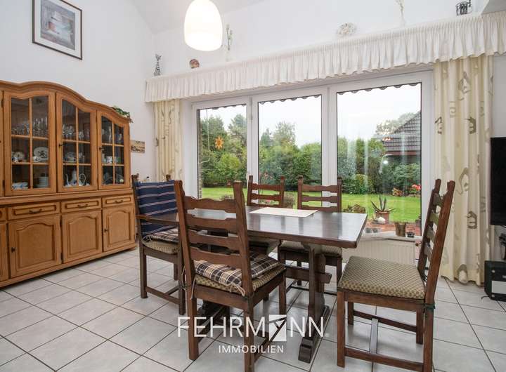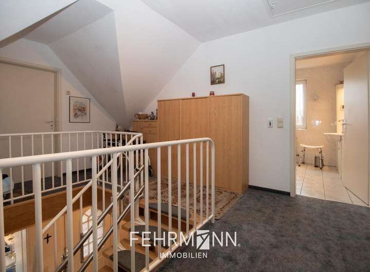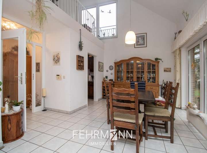 Der große Wohn-/Essbereich zeichnet sich durch eine Galerie aus und verfügt über einen Kaminanschluss, der für behagliche Stunden in den Wintermonaten sorgt.
