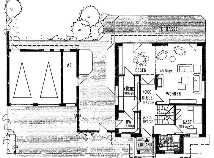 Die Doppelgarage bietet nicht nur Platz für Ihre Fahrzeuge, sondern beherbergt auch eine Sauna – ein Highlight für Wellnessfreunde.