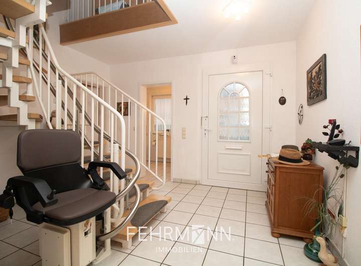 Ein optionaler Treppenlift im Flur ermöglicht darüber hinaus Barrierefreiheit und einen Zugang für körperlich eingeschränkte Personen zum Obergeschoss des Hauses.