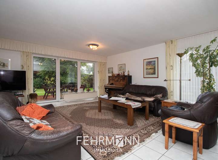 Der gepflegt angelegte Garten stellt mit einem gemütlichen Loungebereich das perfekte Ambiente für erholsame Stunden mit der gesamten Familie im Freien dar.