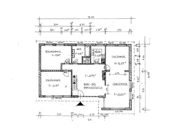 Die Voreigentümer hatten 1991 den Dachboden ausbauen lassen. Bei dieser ausgebauten Fläche handelt es sich um eine Nutzfläche ca. 40 m². Im Erdgeschoss beträgt die Wohnfläche ca. 120 m² ohne Terrassenanteil.