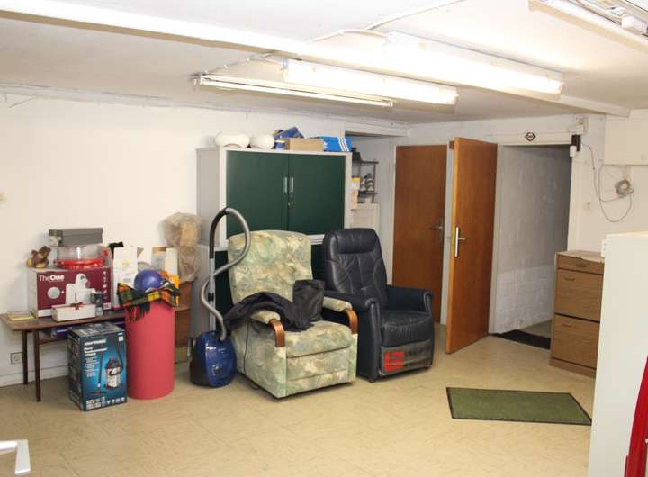 Der Kellerbereich ist auch über eine Außentreppe vom Garten zu erreichen und bietet viel Staufläche.