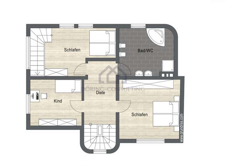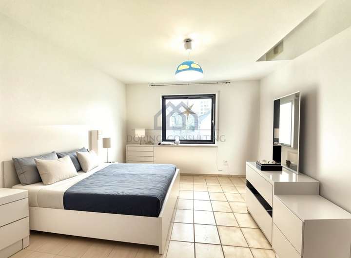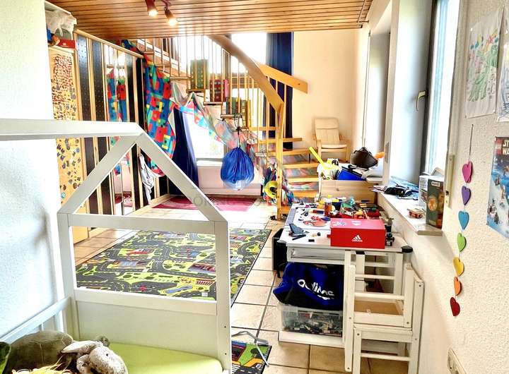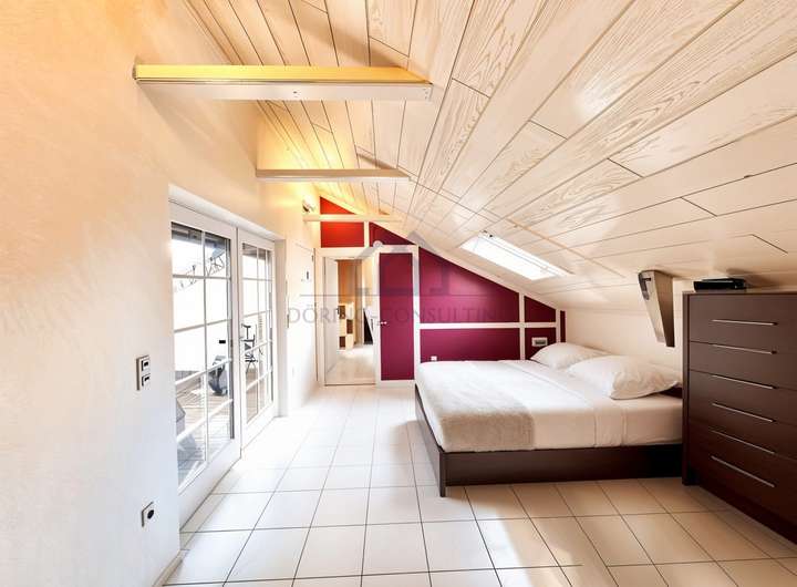 In der erste Ebene sind drei Schlafzimmer vorzufinden, die alle über einen attraktiven Schnitt verfügen. Das große Badezimmer ist sowohl mit einer Badewanne als auch Dusche ausgestattet. Über das dritte Durchgangszimmer erreichen Sie eine weitere Ebene, die den Maisonettecharakter hervorbringt.
