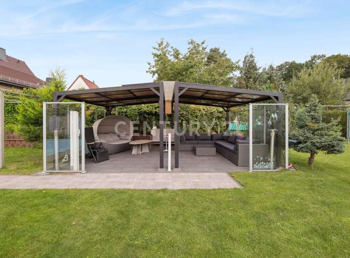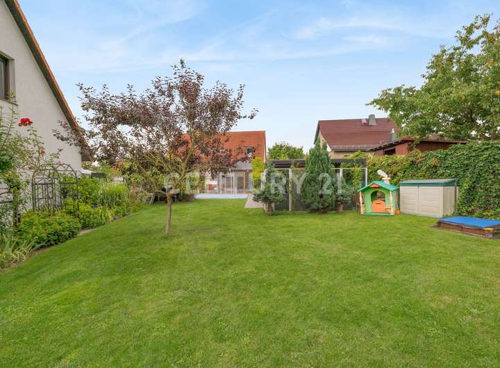 Zusätzlichen Stauraum bieten die großzügigen Kellerräume im Haupthaus mit einer Nutzfläche von ca. 67 m². Der gepflegte Garten lädt zum Entspannen und zu geselligen Stunden mit Familie und Freunden ein.