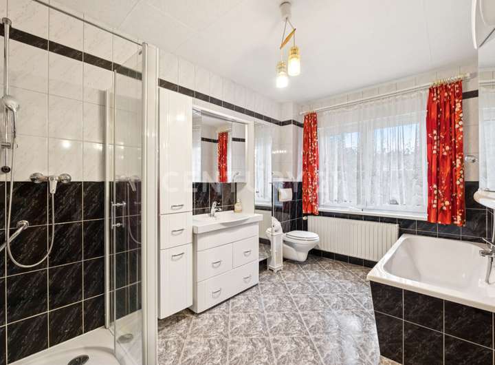 Im gesamten Wohn-und Nutzbereich herrscht ein angenehmes Raumklima, das durch zwei effiziente Zentralheizung (Gas) sichergestellt wird. Jede Wohneinheit erstreckt sich über zwei Stockwerke und bietet Badezimmer, die Funktionalität und Komfort verbinden.