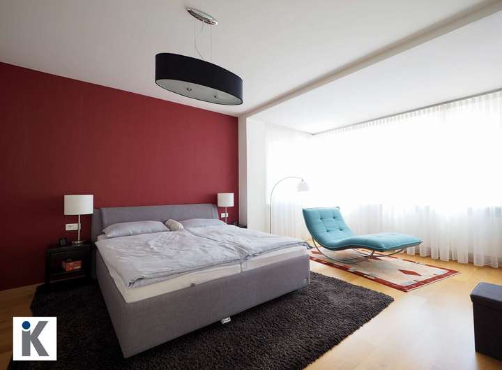 Schlafzimmer mit phantastischem Fernblick und Ankleide hinter einer Korkwand