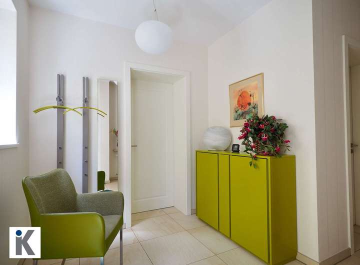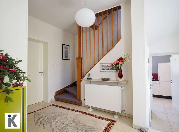 Die Stadtvilla liegt infrastrukturell ideal. Die Stadtmitte ist in 5 Minuten zu Fuß erreichbar, auf dem Weg liegen Stadtverwaltung, Bahnhof, Rheinhaardtbahn-Haltestelle und Banken. Ebenso nahe liegt das Krankenhaus. Das Schulzentrum mit allen Schularten und Kindergarten ist einen knappen Kilometer entfernt.