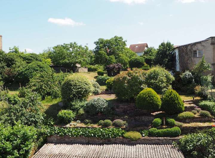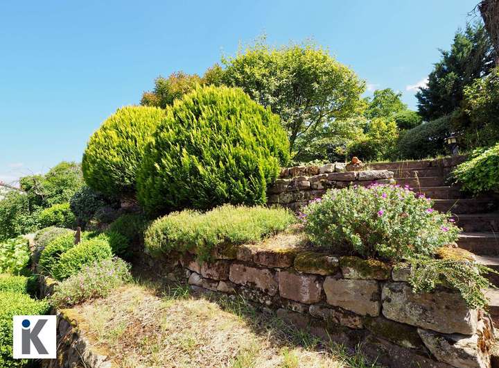 Terrassierter Garten in Hanglage mit gepflegten Natursteinanlagen