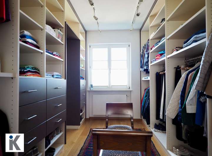 Helles Ankleidezimmer mit viel Stauraum und Tageslicht